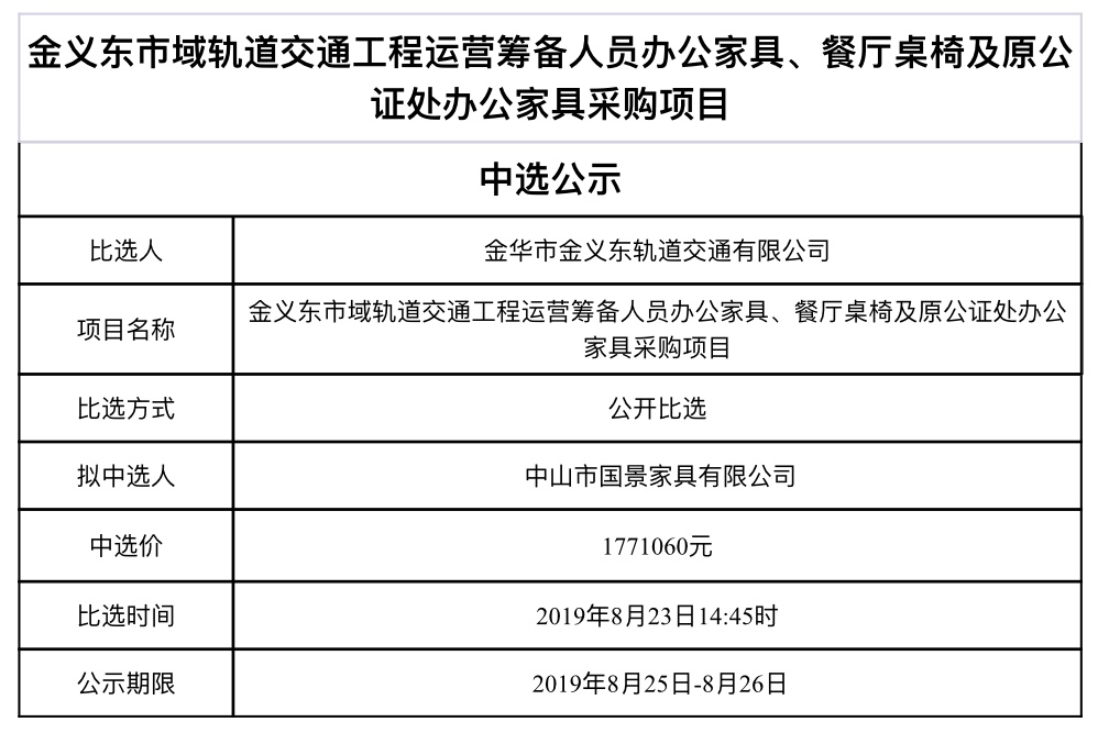 金華市金義東軌道交通有限公司運營2026-2027年度活動實施服務機構框架協(xié)議項目中標候選人公示