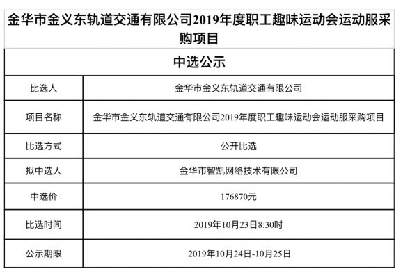 金華市金義東軌道交通有限公司運營2026-2027年度活動實施服務(wù)機(jī)構(gòu)框架協(xié)議項目中標(biāo)候選人公示