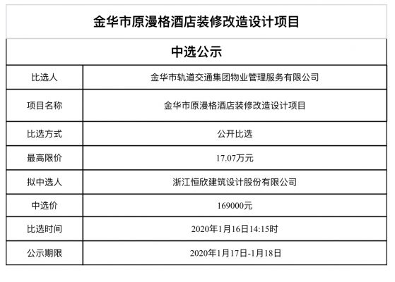 金華市金義東軌道交通有限公司運營2026-2027年度活動實施服務(wù)機構(gòu)框架協(xié)議項目中標候選人公示