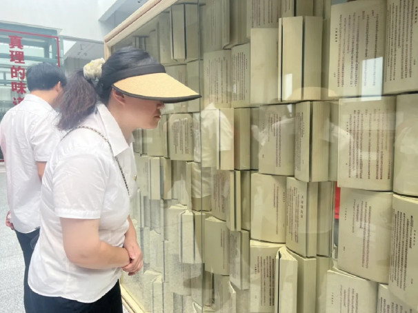 站外,外墻浮雕和廣場(chǎng)雕塑共同訴說(shuō)著“真理味道 信仰之源”的故事。第一部中文版《共產(chǎn)黨宣言》的翻譯全過(guò)程,在這里得到詳盡展示。點(diǎn)點(diǎn)燈火代表星星之火,中間的書本正是《共產(chǎn)黨宣言》,翻動(dòng)的書頁(yè),正是點(diǎn)亮世界的真理力量。